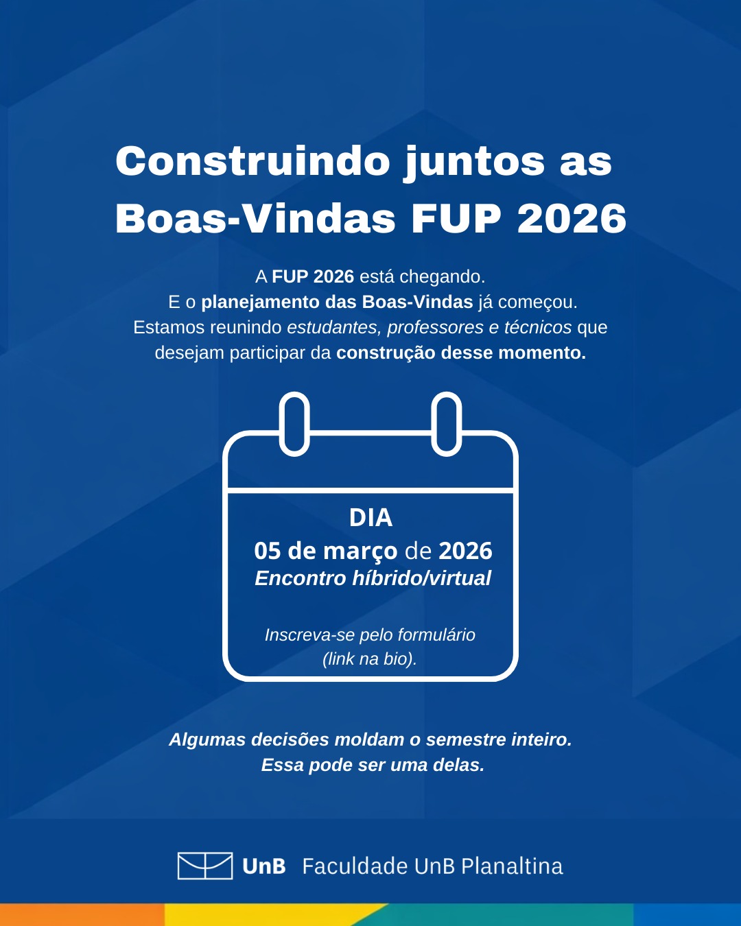 É com grande entusiasmo que convidamos toda a comunidade acadêmica a participar das atividades de Boas-Vindas aos calouros do semestre 1/2026.
